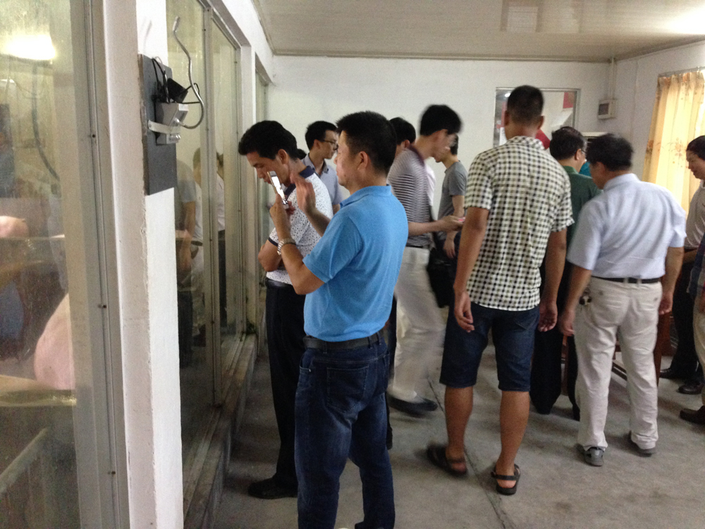 之后,金陵集团管理团队参观了广宁广三保猪场规划布局及污水处理等配套设施,同时还到销售中心鉴赏了广三保的种猪。黄董事长对广宁广三保的种猪给予高度评价,并表示集团旗下的存栏一万两千头母猪的钦州新公司投产时优先从广宁广三保引种。